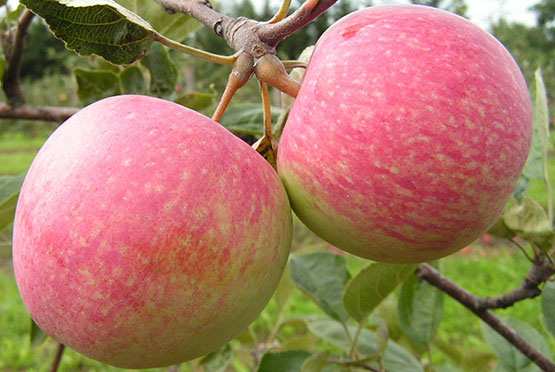 Плоды средней величины (средняя масса – 150 г), неодномерные по форме: от округлой до асиммитричной овальной, основная окраска зеленовато-жёлтая, покровная – розово-красная в виде размыто-полосатого румянца по большей части плода. Подкожные точки светлые, многочисленные, хорошо заметные.