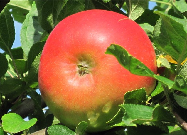 Плоды крупные (средняя масса - 205 г), округлой формы, основная окраска светло-зелёная, покровная малиново-оранжевая в виде размытого румянца по большей части плода, очень привлекательного внешнего вида.