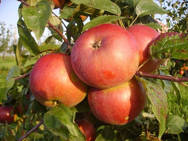 Плоды выше средней величины (средняя масса – 170 г.), ассиметрично округлой формы. Основная окраска зелёная, покровная - красная, размытая по большей части плода.