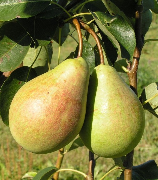 Плоды средней величины (средняя масса – 140 г), грушевидной формы. Основная окраска зелёная в момент съёма, покровная отсутствует или в виде кирпично-красного лёгкого румянца. Кожица гладкая, сухая, блестящая.