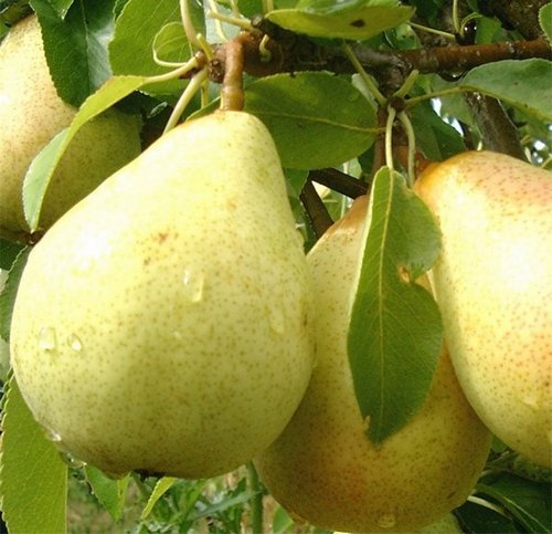 Плоды средней величины, средней одномерности, грушевидной формы. Основная окраска зеленовато-жёлтая, покровная – в виде розового точечного румянца по меньшей части плода. Кожица тонкая, сухая.