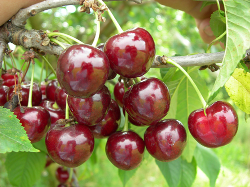 Плоды крупные (средняя масса – 5,7 г), округлые, тёмно-красные.