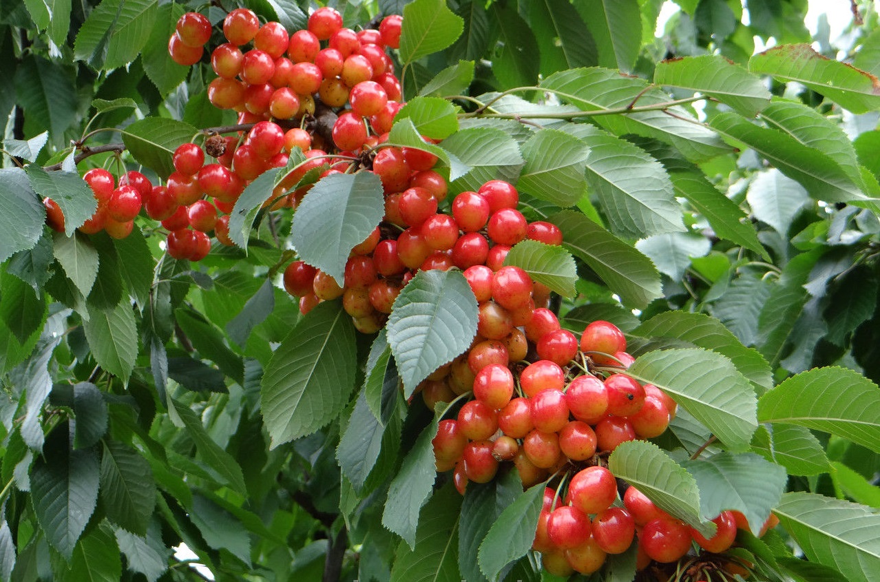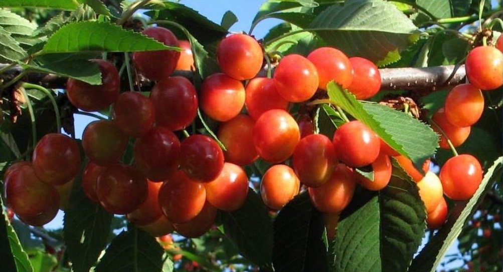 Плоды крупные (средняя масса – 6,3 г.), сердцевидной формы. Основная окраска жёлтая, покровная – тёмно-красная.