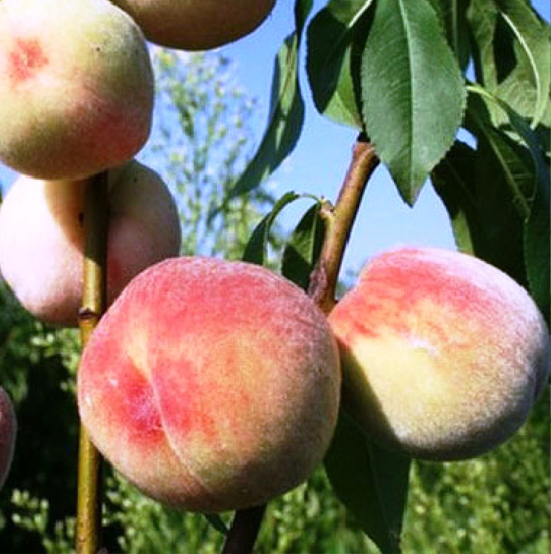 Плоды средней величины, массой 70-90 г, при небольшом урожае 120-140 г, округлые или округло-овальные, с неглубоким брюшным швом. Кожица со слабым опушением, снежно-белая, у хорошо освещенных плодов и красивым тёмно-красным румянцем; плоды выросшие в тени ветвей, обычно румянца не имеют.