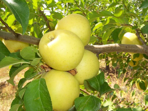 Плодысредней величины, округло-конические, точеные, с сухой, плотной кожицей, в благоприятных условиях с легкой шероховатостью, золотисто-светло-зеленого, позднее – желтого цвета, иногда с размытым красноватым румянцем на солнечной стороне.
