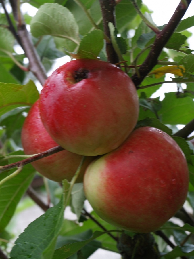 Плоды выше средней величины (средняя масса – 155 г.), округлой формы. Основная окраска светло-жёлтая, покровная – ярко-малиновая, занимающая большую часть поверхности плода, очень привлекательного внешнего вида.